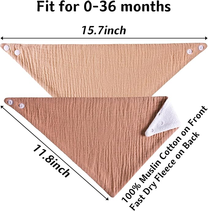 - Wide Applications: These soft muslin baby drool bandana bibs can be used as teething bibs, burp cloths, washcloths, wipe cloths, and even a stylish handkerchief on journey.