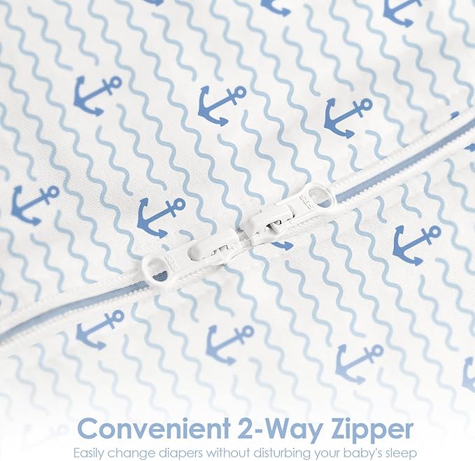 Baby Swaddle 0-2 Months, Cotton Arm-In Zipper Sleep Sack, Wearable Blankets Wrap for Newborn Infant Girls and Boys (Whale, Anchor, Pack of 2)