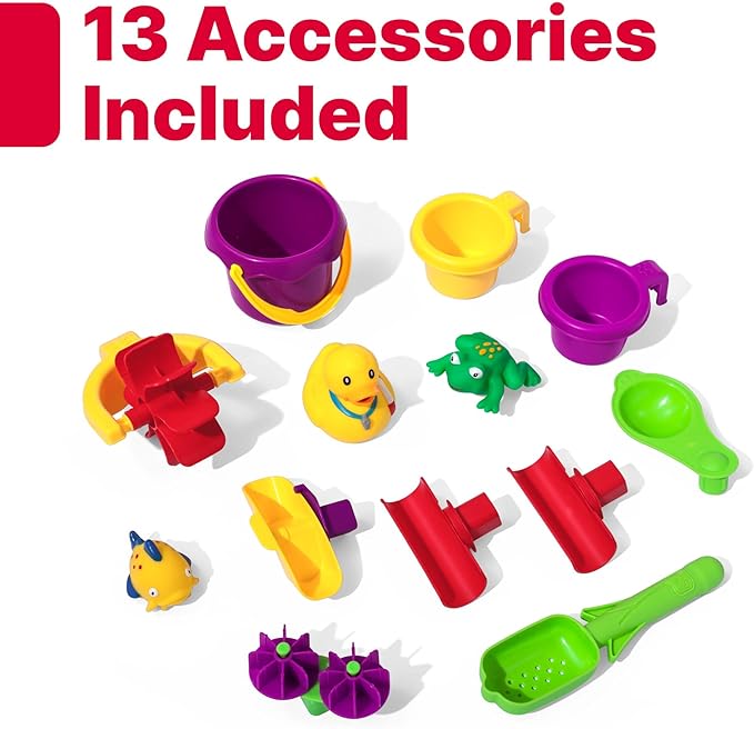 - FUN FOR ALL KIDS: The Splash Pond’s large table surface lets several kids play together with easy access, encouraging social play and sharing skills. The water basin holds up to 5 gallons, with dimensions of 32" H x 24" W x 39" D