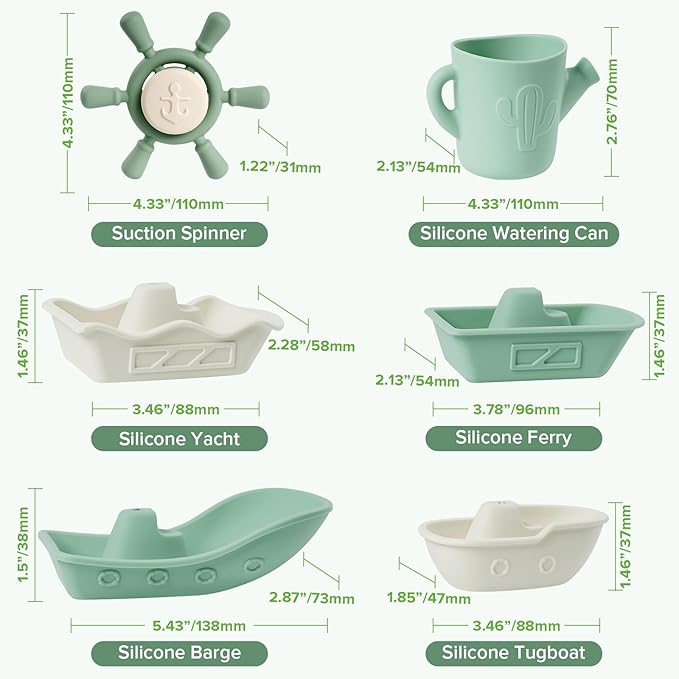 - SPLASHING BATHTIME FUN FOR LITTLE CAPTAINS: This interactive baby bath toys set includes four stackable boats, a baby bath rinse cup and a suction spinner, making it perfect for tubs, pools, or beach play. Ideal for sensory, scooping, and imaginative water adventures.
