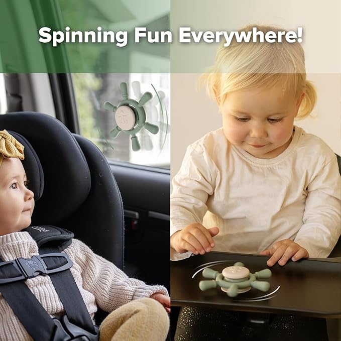 - SPIN FOR ENTERTAINMENT ANYWHERE: The spinner toy for babies suctions to bathtubs, highchairs, or tabletops for secure, on-the-go play. Spinning builds motor control while keeping little hands busy and focused.