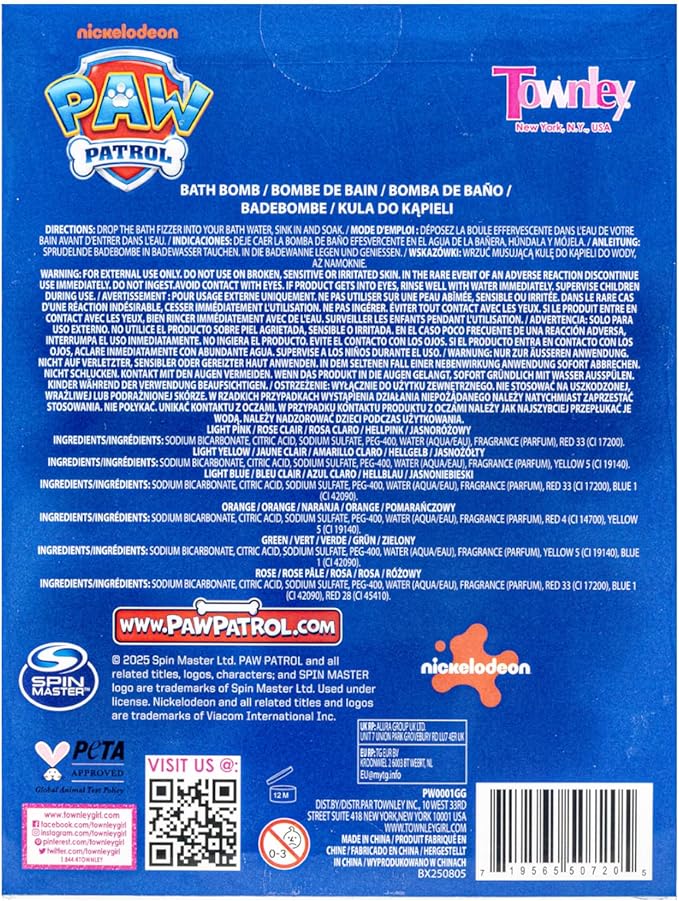 Paw Patrol 6 Pack Cucumber Melon Scented Bath Bombs Non-Toxic Character Molded Bath Bombs Fun and Bright Colors Great for Birthday Gifts, Stocking Stuffers, Slumber by Townley Girl