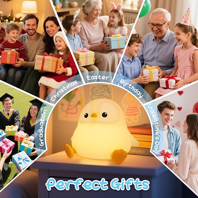 - ππππ₯π ππ‘π πππ¦πππ‘: Fall in love with the adorable penguin night light!A slumbering penguin is captivating . Its kawaii shape brings vitality to any space while its soft light creates a soothing ambiance in the bedroom, living room, bedside, or studyβmaking it the perfect companion for your kids