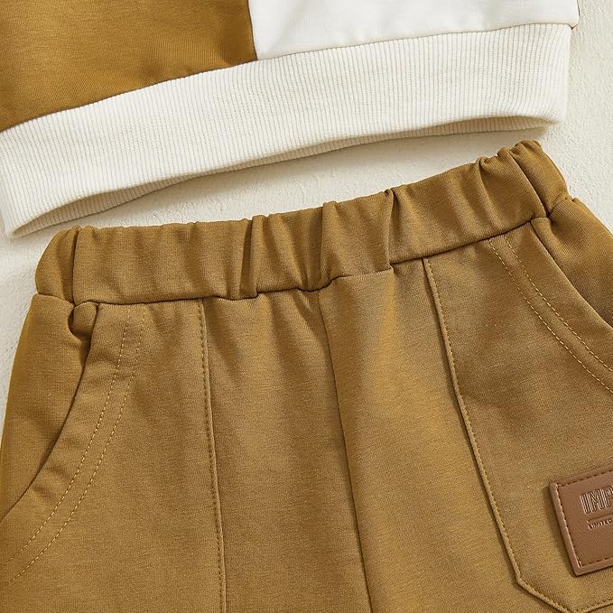 - Design: Toddler boys casual 2pcs outfit sets, color block long sleeve crew neck pocket pullover sweatshirt jumper tops, drawstring casual long pants joggers, toddler baby boy sweatsuit, cute toddler boy fall clothes.