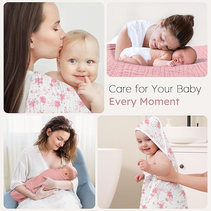 - High Absorbency: our baby hooded towel boasts a seamless 6-layer muslin yarn integration, absorbs water three times than cotton baby towels , keeping your baby dry and clean quickly after baths. Adorable hooded design makes this baby towels with hood an awesome baby shower choice!