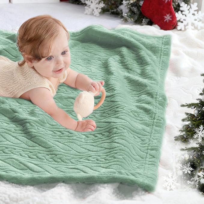 BORITAR Baby Blanket for Boys Soft Fluffy Fuzzy Blankets, Warmer Comfort 3D Lightweight Bed Blanket for Toddlers Infant Newborn and Home Decor (30x40 inch, Sage Green)