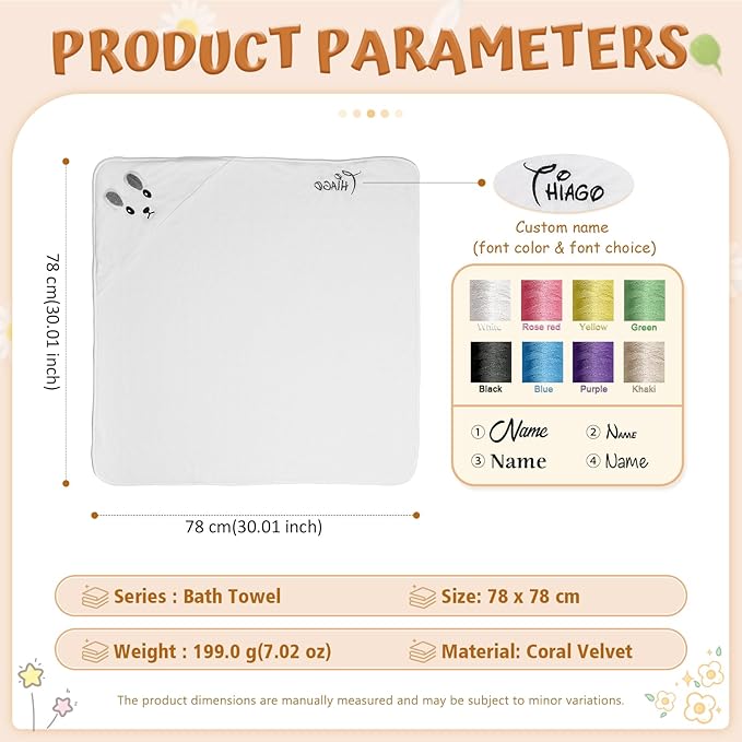 - đăPersonalized Baby Bath Towels with HoodăđďźCustom embroidery makes these hooded baby towels truly unique among newborn essentials must haves. Personalize with your babyâs name and choose from multiple thread colors. Perfect for baby towels for newborn, they are designed as thoughtful baby gifts for every occasion.