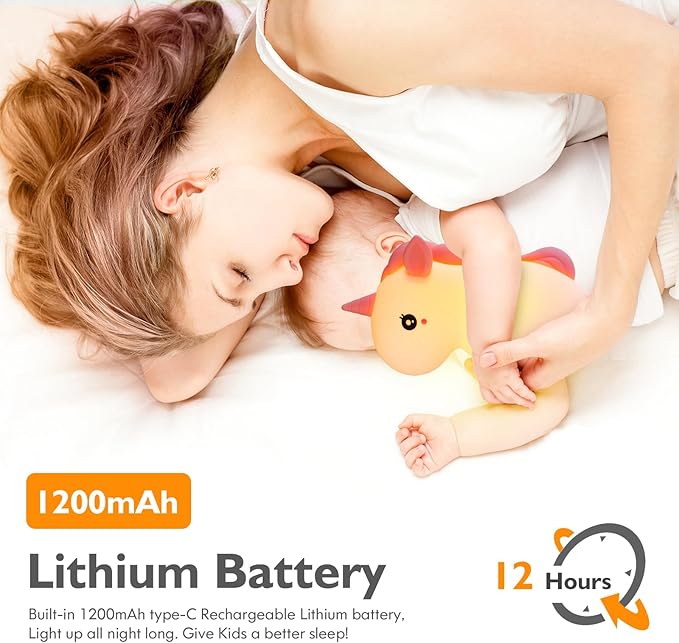 - š¦ Please charge with the USB charging cable that comes standard with our product. Do not use a fast charging cable. The SANKEDOU Unicorn Night light comes with a long-lasting rechargeable battery (Superb life span and safety comes with a protection circuit) and a handy USB cable for easy charging through any USB power outlet which allows to light up the nursery for 12 hours with a single charge. Portable to take it with. Offer a long companionship for the kids. Also a 24-monthes warranty, any quality problem of all the kids night will be solved with good service. If this night light does not light up or there are other problems about the product, please contact us in time