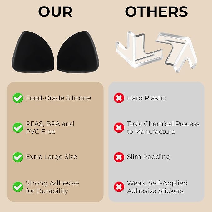 - Safer baby proofing for active crawlers and toddlers. Our black corner protector baby 12 pack uses soft, food grade silicone to cushion sharp furniture edges on coffee tables, desks, nightstands, and bed frames.