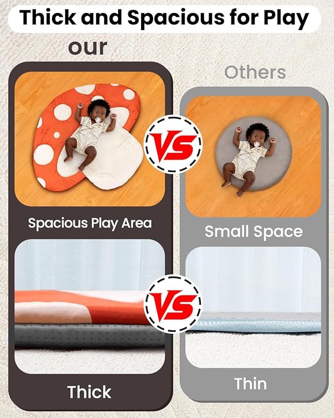 - Easy Setup and Storage: This mushroom baby play gym requires no tools and can be assembled in just a few minutes, making it easy for parents to set up. The baby gym play mat is foldable for easy storage, saving space and perfect for small areas like apartments, bedrooms, or living rooms