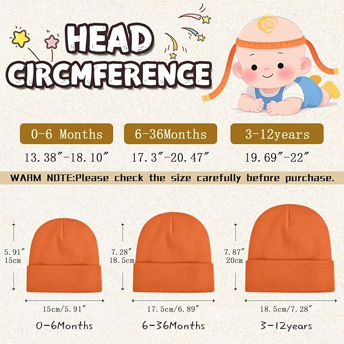 - Grow-With-Me Fit (0-6M to 3-12 Years) & Long-Lasting Shape-- Available in 3 extended sizes (0-6M, 6-36M, 3-12 years), this kids beanie features snap-back elasticity. It stretches seamlessly as your child grows, staying comfortably snug without getting loose, and retains its perfect shape season after season. (One hat lasts for years!).