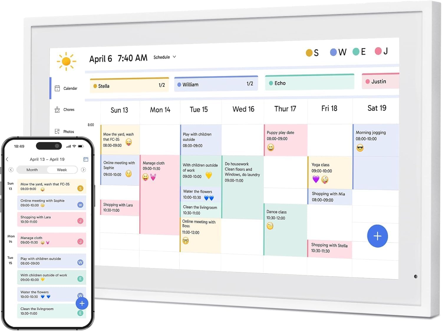 - 【Manage from Anywhere】: Stay connected with the powerful eCalendar App. Access and manage your calendar on the go, with free features like a photo frame, chore chart, dinner plan, grocery list, and more. Paid functions like Magic Import offer advanced tools tailored for users with special needs.