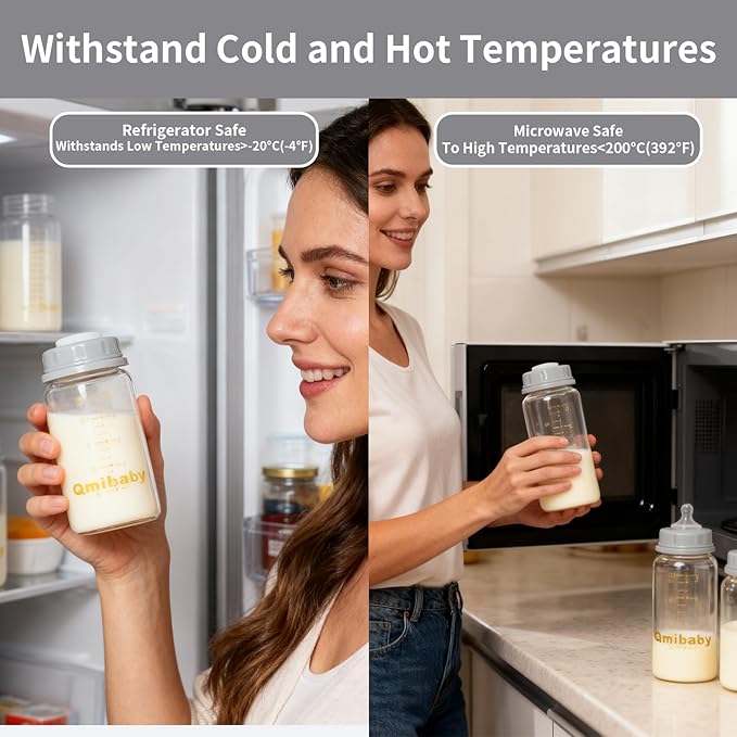- Premium Borosilicate Glass: Safe & Shatter-Resistant. Crafted from food-grade borosilicate glass, our bottles are 100% BPA-free, lead-free, and free of harmful substances—no plastic odors or residue seeping into breastmilk. The upgraded shatter-resistant design withstands daily drops, avoiding safety risks from broken glass, while maintaining glass’s natural ease of cleaning. Perfect for refrigeration, heating, and room-temperature storage, keeping breast milk safe at every step