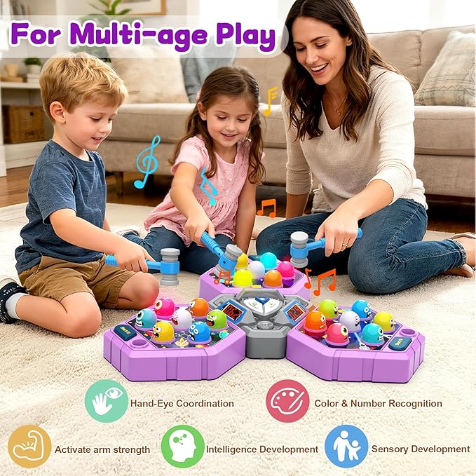 - Kids Toys with 3 Modes: This whack game toy is an excellent tool for early childhood education and development. It fosters musical abilities, enhances muscle coordination, and improves physical coordination in 3-8 year old boy and girl. With 3 interactive modes including Easy, Competitive, Memory which each mode supports 1-3 players. Annkie whack toy is a perfect choice for nurturing growth and learning, kids can challenge themselves for endless excitement.