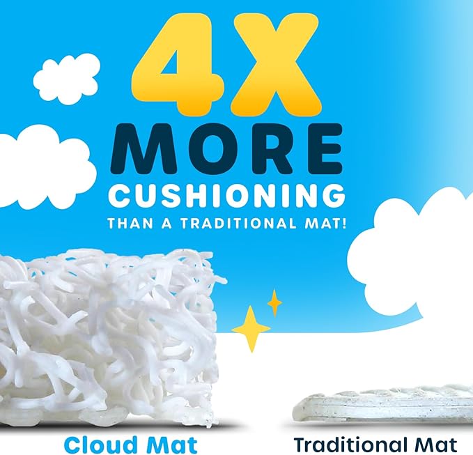 - Soft & Comfortable Underfoot: This thick loofah-style nonslip bathtub mat features 4X more cushioning than traditional mats. Ideal for kids, toddlers, babies, and people with sensitive feet, the highly slip-resistant surface offers peace of mind during showers or baths. Plus the cute cloud shape is the perfect addition to your childs bathtime accessories, adding a touch of whimsy to your bathroom decor.