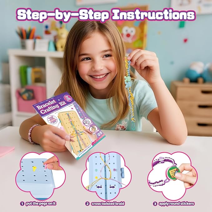 - 3-Layer Storage Compartment :Say goodbye to messy supplies! This jewelry bracelet maker for kids features a 3-layer storage compartment that neatly separates threads, beads, buttons, and finished friendship bracelets. It's compact, portable, and perfect for travel, camping, or crafting at home—keeping your child's creative space tidy anytime, anywhere