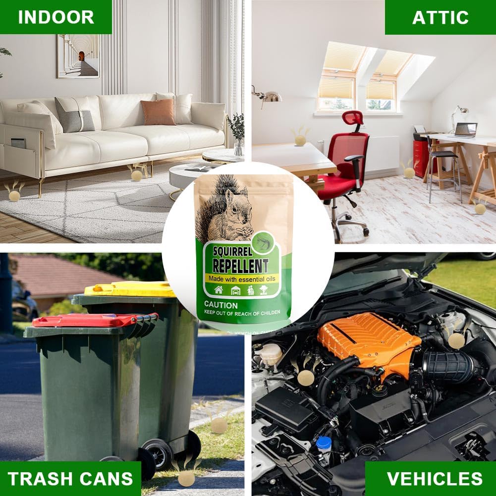 - Ready to Use: Simply place or hang the squirrel repellent in areas prone to squirrel activity.
