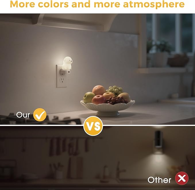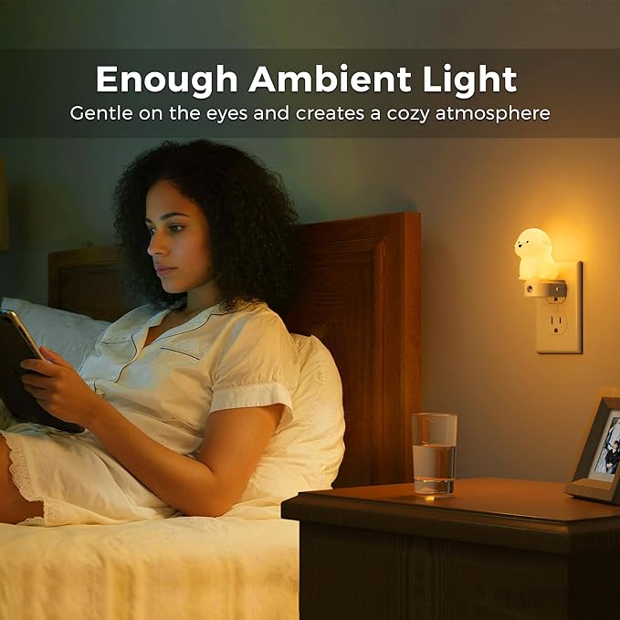- [Automatic Dusk to Dawn] This night light features smart sensors, turning on at dusk and gently powering off at dawn. For optimal performance, avoid placing two night lights too close together.
