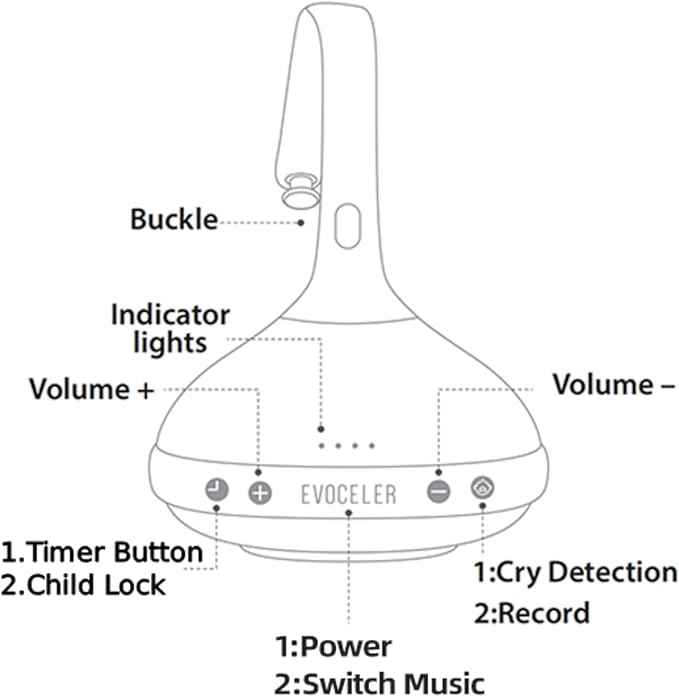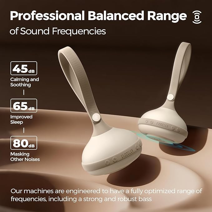 EVOCELER | Portable White Noise Sound Machine for Babies and Kids | Auto Cry Detection | 9 Soothing Sounds | Sleep Soother | Voice Recording | 15H Battery | Travel | Baby Registry Gift | Stroller Clip