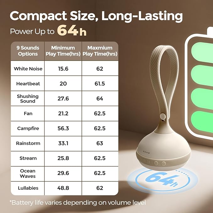 - Design on the Go:Designed for travel, this portable baby sound machine detects crying and plays soothing noise—perfect for naps, nights, or fussy moments.