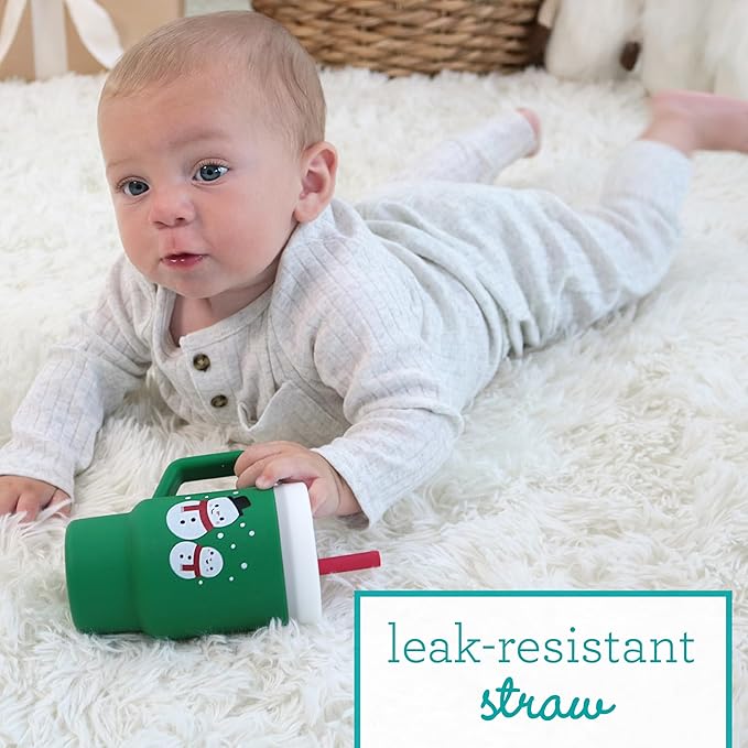 Infantino My 1st Tumbler, Silicone Sippy Cup with Straw & Handle, Spill-Resistant Baby Cup for On-the-Go, BPA-Free Transition Bottle, Snowman