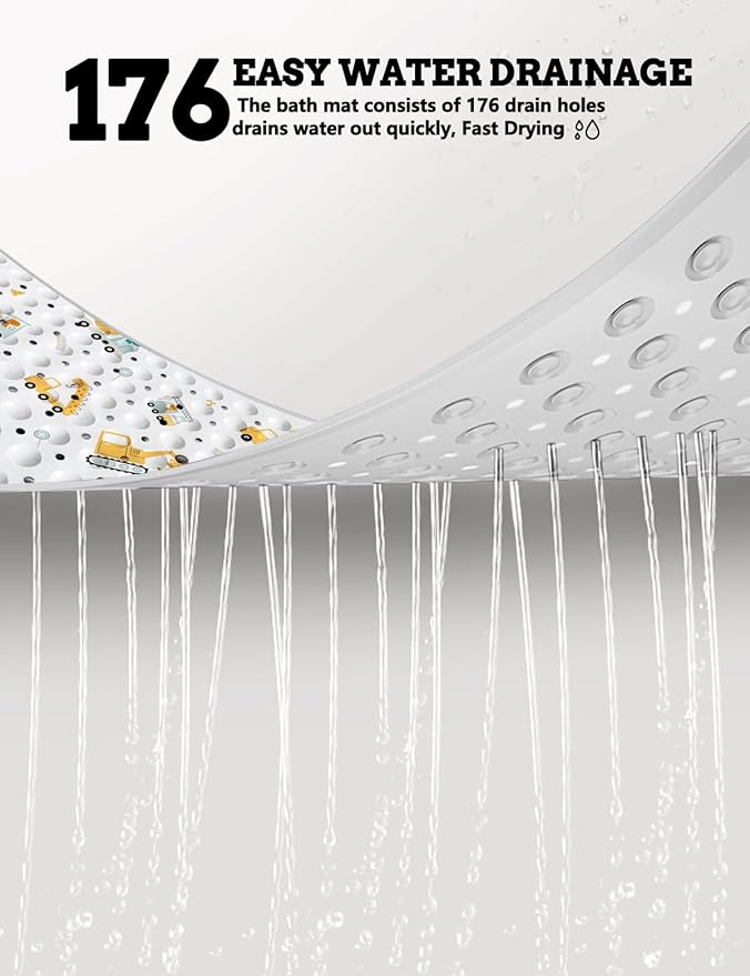 LNOND Baby Bath Mat Non Slip,Kids Bath Mat for Bathroom,Dinosaurs Driving Excavator Shower Mat with Drain Holes and Suction Cups,40 X 16 Inch