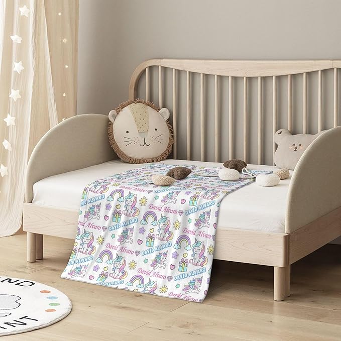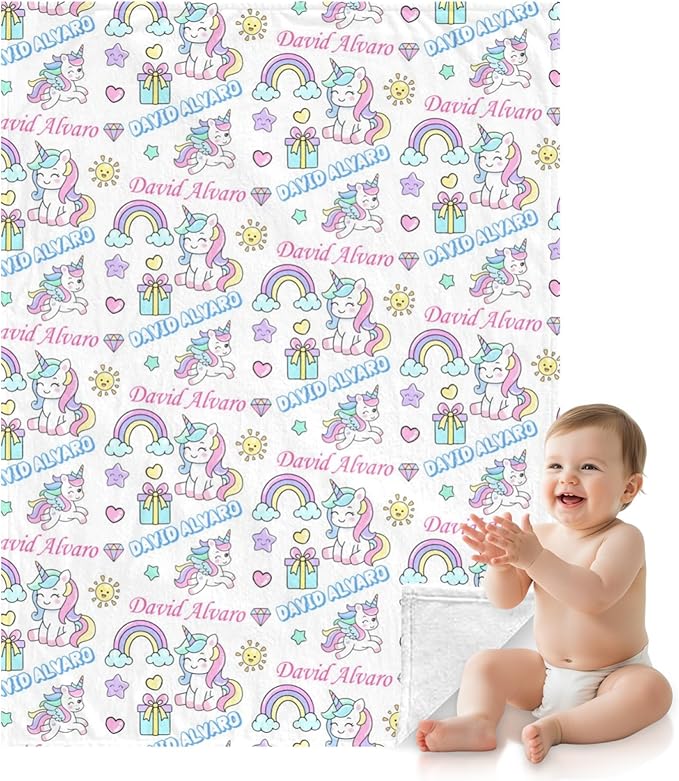 Ship Next Day, Personalized Baby Blanket for Boys Girls - Printed in USA, Custom Name Toddler Blanket with Rainbow Horse Pattern, Perfect Newborn Gift