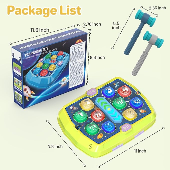 - Bonding Through Playtime: Designed for shared enjoyment, this interactive game features two adjustable volume levels and unique sound effects for different modes. It's the ideal toddler boy toys 3-4 and beyond, encouraging laughter and teamwork as kids play with friends or family. Strengthen precious parent-child bonds with every whack!