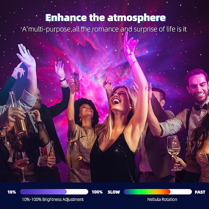 - There are two control modes, APP and remote control: APP can time the starry sky lights., ensuring it turns off automatically as you fall asleep. Easily adjust brightness, rotation speed, and breathing effects using the remote control,battery not included),Color mode.