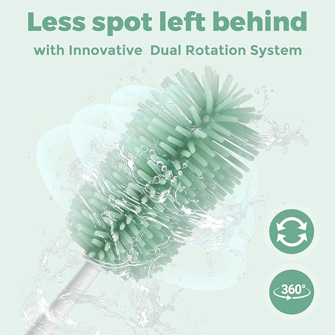 - Innovative Dual Rotation System:With our unique dual-rotation design, you'll never have to worry about missing hard-to-clean spots again. It avoids dead corners when cleaning in one direction, ensuring cleaning efficiency. Reduces bottle scratches by 50% vs single-direction brushes, protecting bottle surfaces and extending brush life, so you can say goodbye to frustrating cleaning experiences.Data from Momcozy Lab testing.