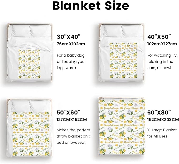 Ship Next Day Personalized Baby Blanket, Printed in USA - Custom Name Toddler Blanket with Lemon Pattern, Personalized