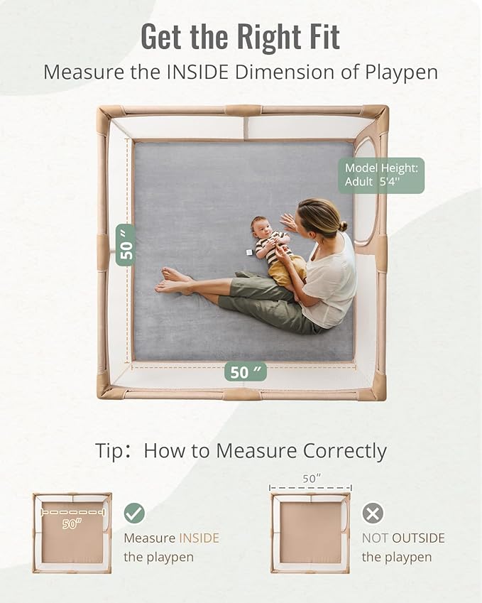 - Cushioned Comfort & Support – The 1'' thick foam padding offers a soft, safe surface for crawling or play. It protects against hard floors to reduce bumps and falls. Measuring 50×50'', this mat fits playpens with the same INSIDE dimensions