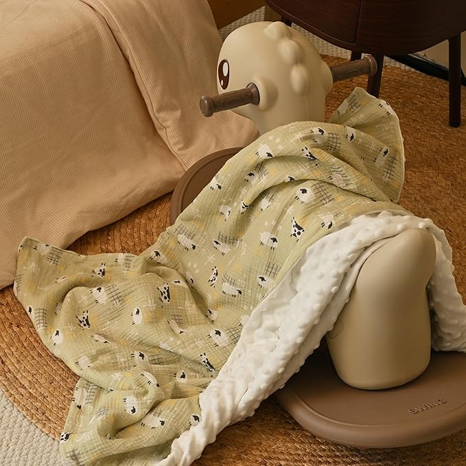 GLLQUEN BABY Blankets for Unisex Newborn Super Soft Nursery Minky Blankets with Muslin Cotton Front and Dotted Fleece Backing, Happy Little Sheep, 30 x 40 inches