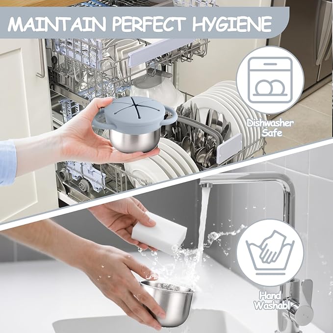 - 3-in-1 Design for Mess-Free Snacking: Our snack cups for toddlers spill proof feature a unique 3-in-1 design: a durable stainless steel snack containers for kids base, a silicone snack containers with lids top, and a silicone lid with a petal-shaped opening for easy access. This clever design ensures no spill snack cups for toddlers, making them perfect for busy parents and active little ones.