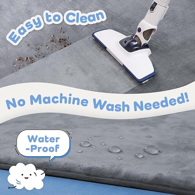 - Easy-to-Clean Velvet Surface: The soft velvet surface of this padded play mat for baby is waterproof and wipeable. Just vacuum or spot-clean milk, dirt, or spills, keeping your baby play mat fresh for everyday use.