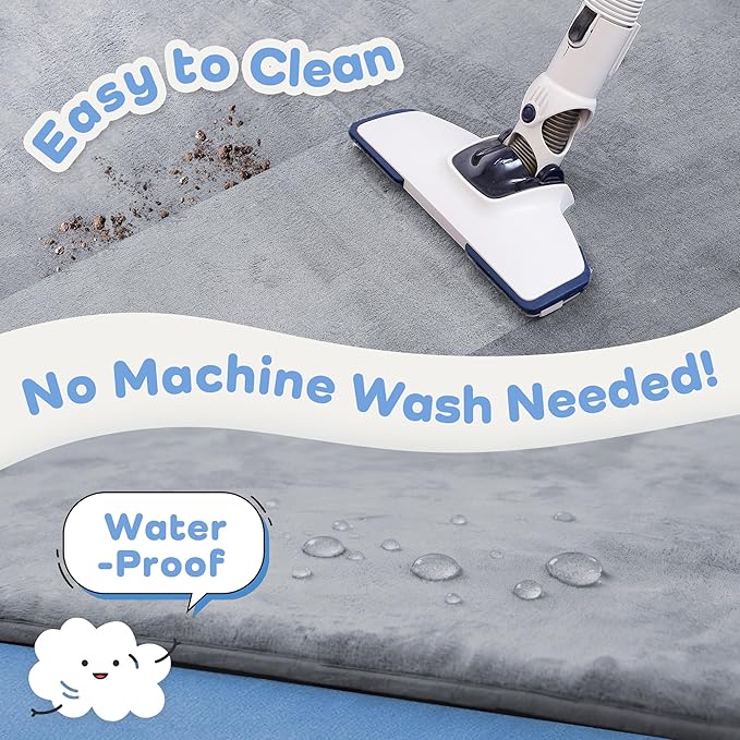 - Easy to Clean: This thick play mat for baby features a soft, wipeable velvet surface that’s easy to clean. Just vacuum or spot wipe spills, milk, or dirt. Whether used as a baby girl play mat or bedside rugs for bedroom, it stays fresh and hygienic for daily use in busy homes.