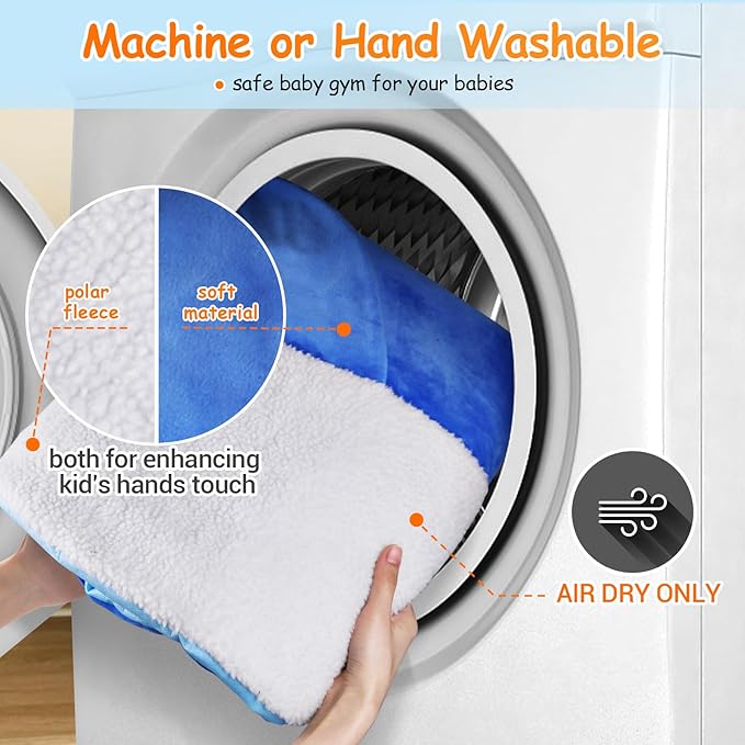 - Easy To Install & Clean --- The tummy time activity mat is easily install and disassemble the infant play mat in one minute, easy to storage and portable. The baby play mat is also machine washable or wipeable, making it easy to clean after playtime. Attention: ONLY AIR DRY.