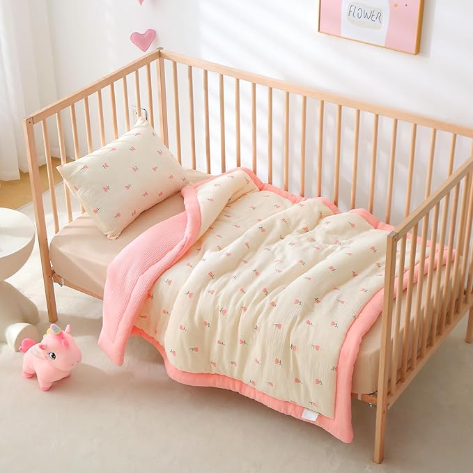Cotton Muslin Toddler Comforter/Quilt,Ultra Soft & Breathble Muslin Toddler Blanket,All Season Baby Blankets for Boys and Girls, Machine Washable,41"x48"