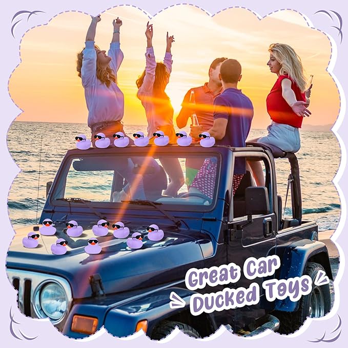 - Products Include: you'll receive 36 light purple small rubber ducks, paired with 36 black mini glasses, enough to share with your family or friend; Besides, these ducks and sunglasses are separate, you can wear sunglasses on the ducks' eyes, cute and interesting; Note: if the accessories fall off, you can glue them back by yourself