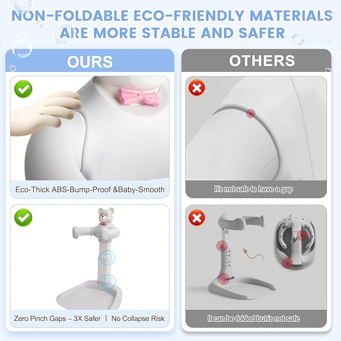 - ADJUSTABLE DESIGN: Height-adjustable shower stand with cute bear-shaped head provides comfortable bathing support for babies and toddlers