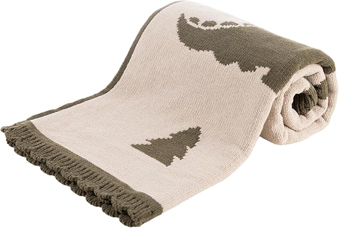 Berkshire Baby Blanket,Ultra-Plush Reversible Chenille Knit Toddler Blanket,Cute Pattern Nursery Crib Blanket,Ideal Baby Gift(30x40 Inches,Dino WalkKalamata)