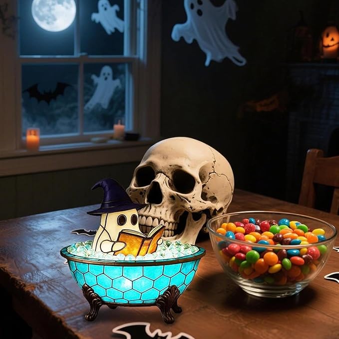 - Relaxing & Functional Illumination: Enjoy the perfect Ghost Flickering Nightlight effect or steady, soothing glow. Ideal for bedtime stories, late-night reading, creating a calming bath atmosphere (Ghost Bubble Bath Lamp), or providing gentle navigation as a Nightlight for Halloween or every night.