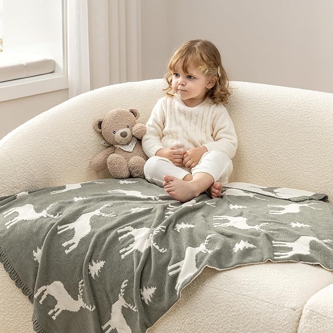 Berkshire Baby Blanket,Ultra-Plush Reversible Chenille Knit Toddler Blanket,Cute Pattern Nursery Crib Blanket,Ideal Baby Gift(30x40 Inches,Woodland Deer Farmhouse Sage)