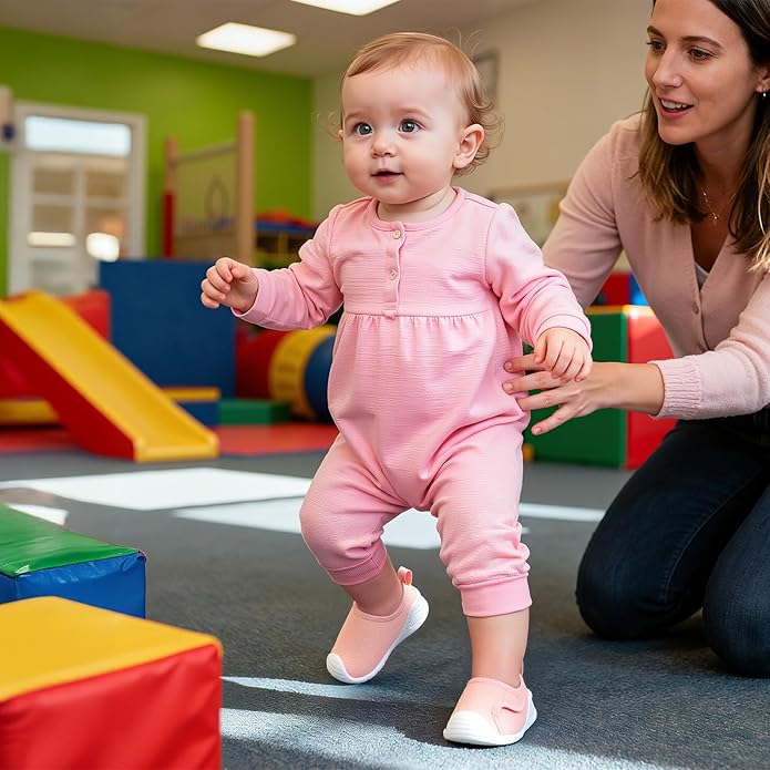 - [Stabilizing Heel]: These baby's first walking shoes are designed with reinforced heel cups to stabilize the ankle and prevent gait abnormalities, while their flexible sole bends at the child's natural foot point to ensure proper weight distribution during early walking stages