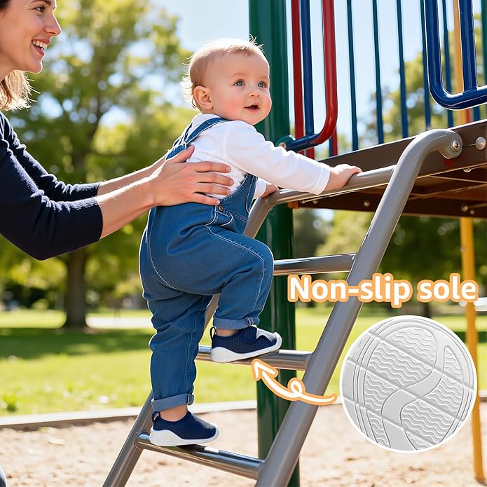 • [Breathable Upper]: These infant shoes feature a lightweight mesh upper wicks away moisture to keep little feet dry, while the seamless interior prevents chafing. This combination ensures your baby's comfort throughout the day, supporting healthy foot development