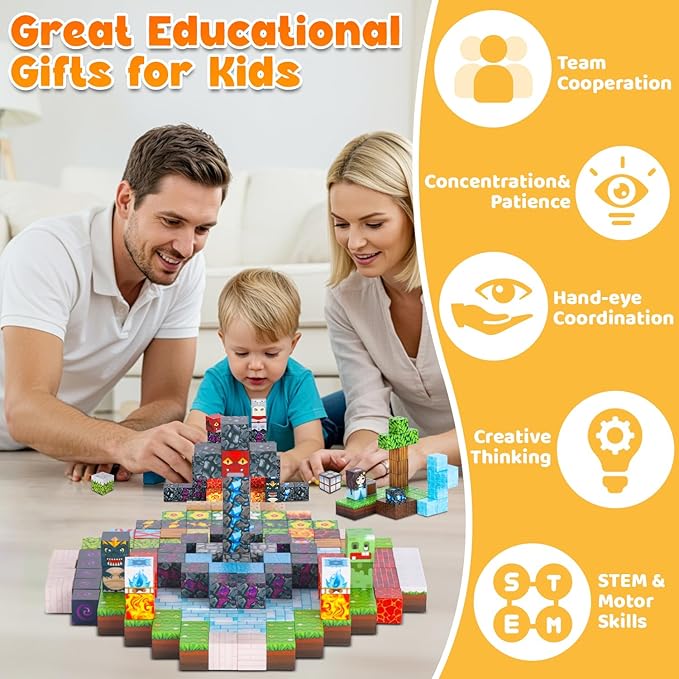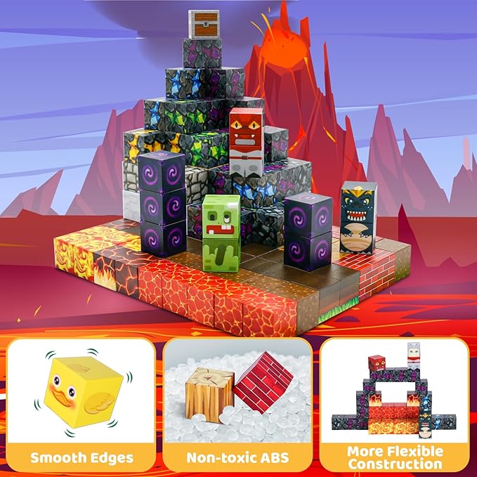 - 【Safe & Durable Build for Young Hands】Crafted with non-toxic, food-grade materials and smooth rounded edges, these magnetic blocks are both kid-safe and waterproof. Each piece is thoroughly lab-tested to ensure durability and safety, allowing kids to freely build, take apart, and reconstruct with confidence