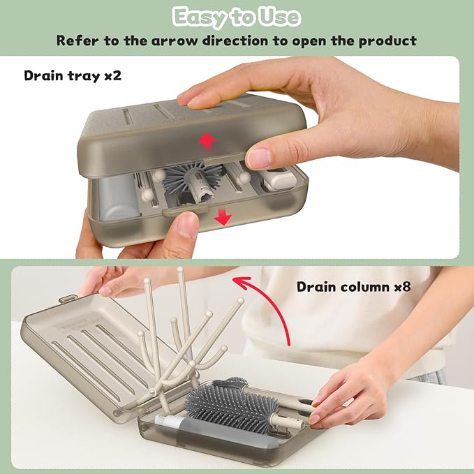 - Foldable Drainage Rack: The baby bottle brush set can accommodate multiple bottles and pump parts at once. This rack is stable and easy to clean, ensuring that your bottles dry quickly and effectively. It meets your daily usage needs.