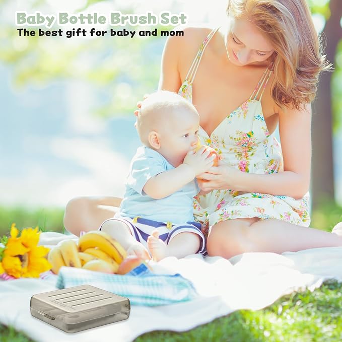 - Baby Bottle Brush Set: This bottle brush set comes with a neat storage box, with the brush handle and head fitting perfectly together, forming a compact whole when closed. Its small size and lightweight make it easy to fit into a mom's bag, luggage, or car storage compartment. Whether you're at home, outdoors, or on a long journey, it's the perfect companion for cleaning your bottles.