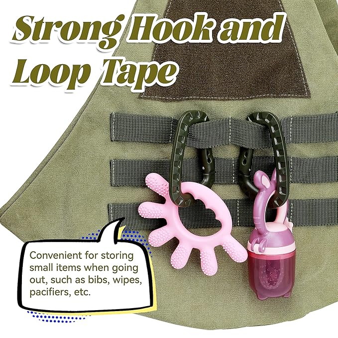 - STYLISH & PRACTICAL – Attach your favorite patch to the hook and loop panel for personal style. The included carabiners keep essentials (bottles, pacifiers, bibs) within reach—no more digging through bags when needed.