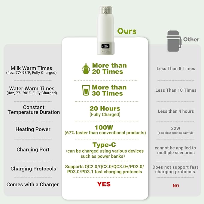 - š * All-Day Power Solution * - 16000mAh battery supports 16-30 heating cycles per charge with 110-minute fast charging. Your reliable portable breast milk warmer for extended outings without power concerns.